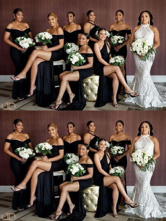 Black Mismatched Bridesmaid Dresses Mermaid Wedding Guest Dresses