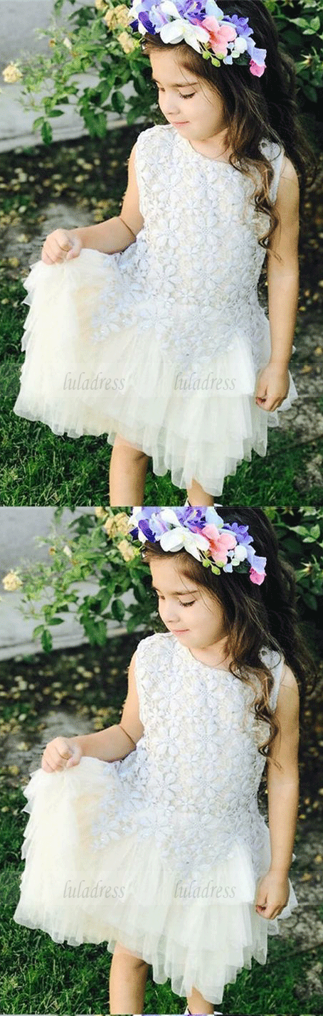 Cute Flower Girl Dress, Flower Girl Dresses for Weddings, Lace Applique Flower Girl Dress, Sleeveless Flower Girl Dress