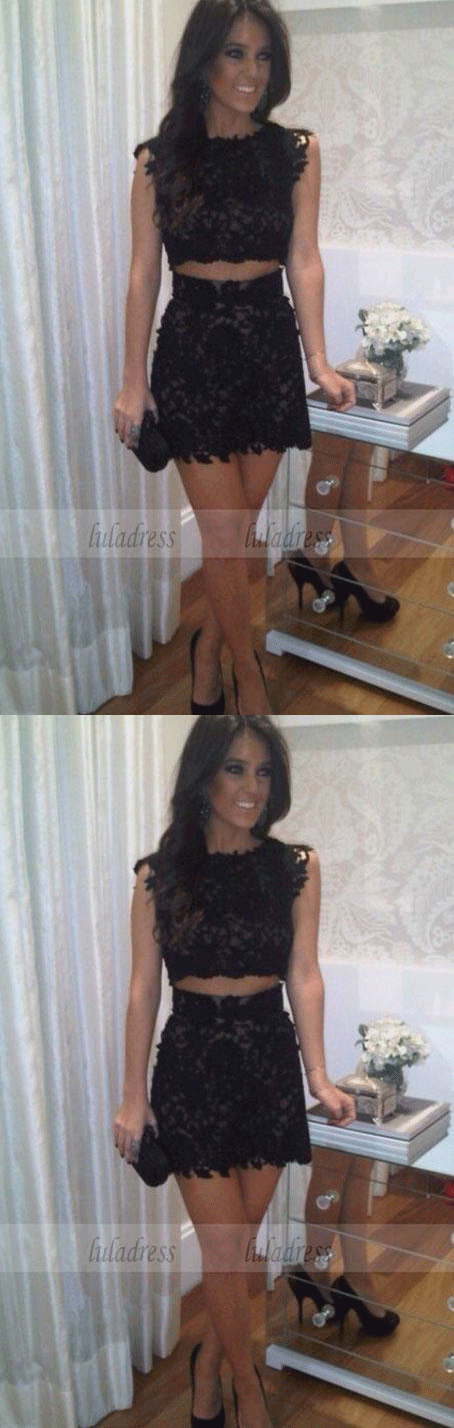 Lace Prom Dresses, Sexy Party Dress, Two Piece Appliques Prom Dress, Short Homecoming Dress