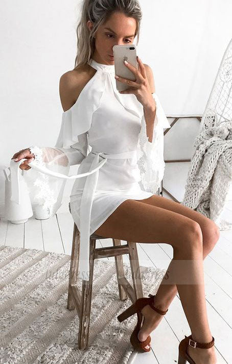 Long Sleeves Short White Lace Homecoming Cocktail Dress