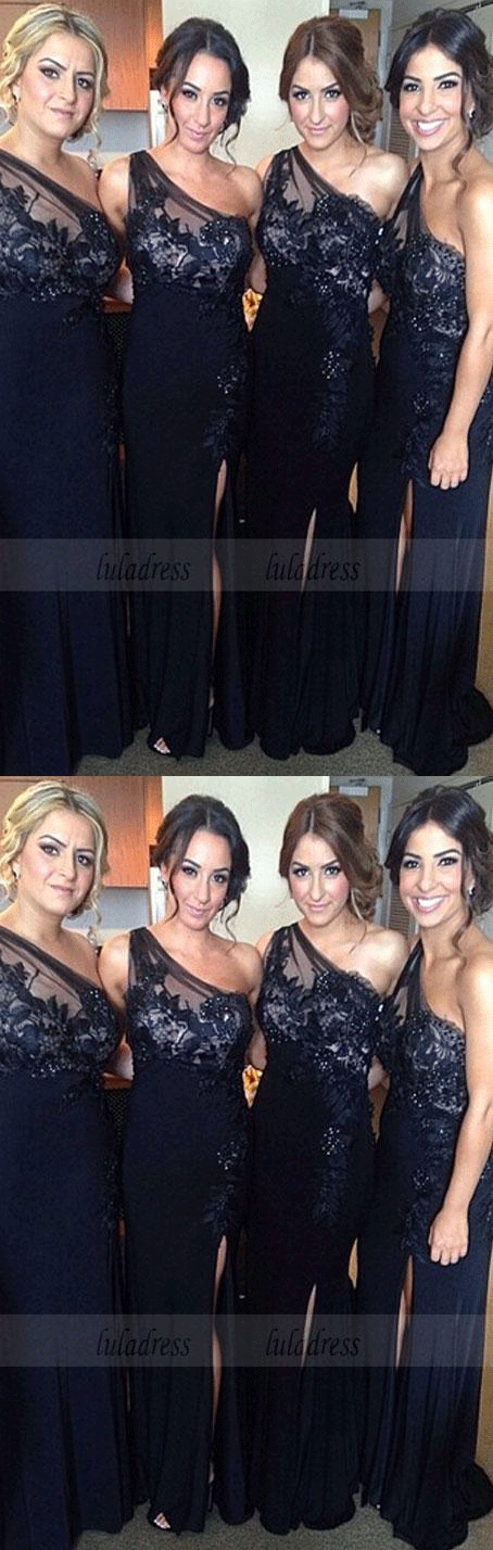 One Shoulder Bridesmaid Gown,Pretty Prom Dresses,Lace Prom Gown