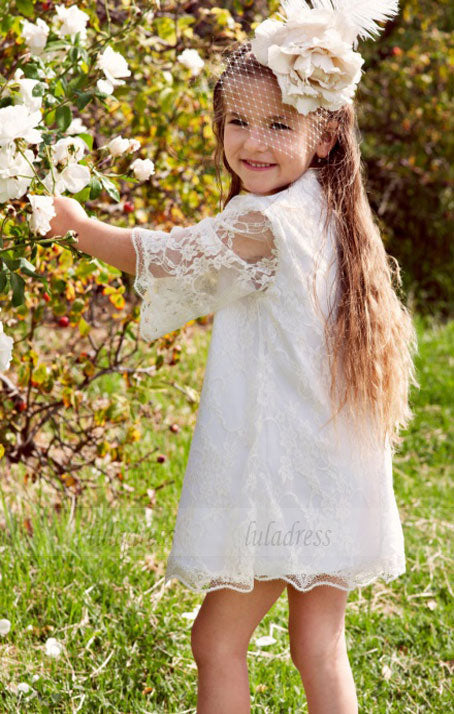 A-Line Scoop Half Sleeves Short Apricot Lace Homecoming Dresses
