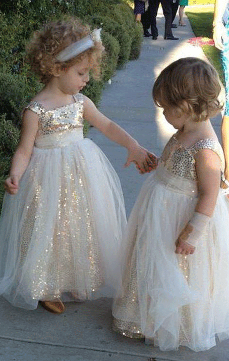 Sparkly A-line Gold Sequins Long Flower Girl Dress