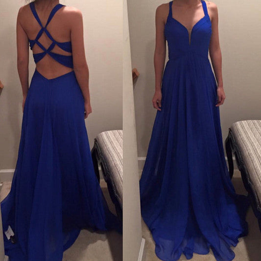 blue Prom Dresses,long prom dress,open back prom Dress,sexy prom dress
