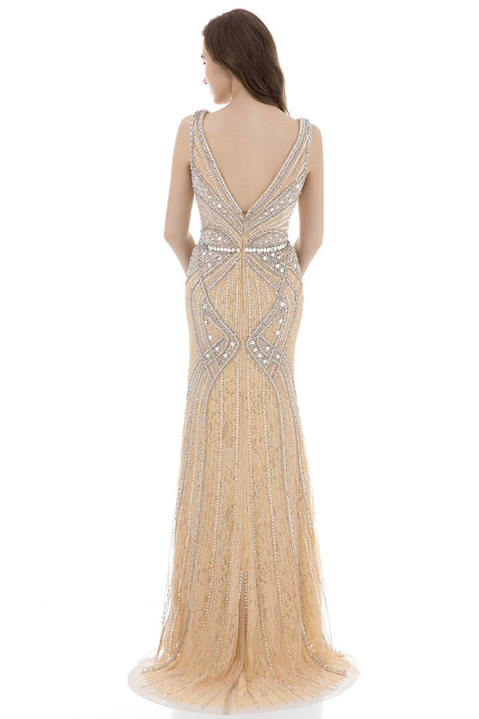 Formal Beaded V-neck Mermaid Long Evening DressRegular price $189.00 USDRegular priceUnit price / per