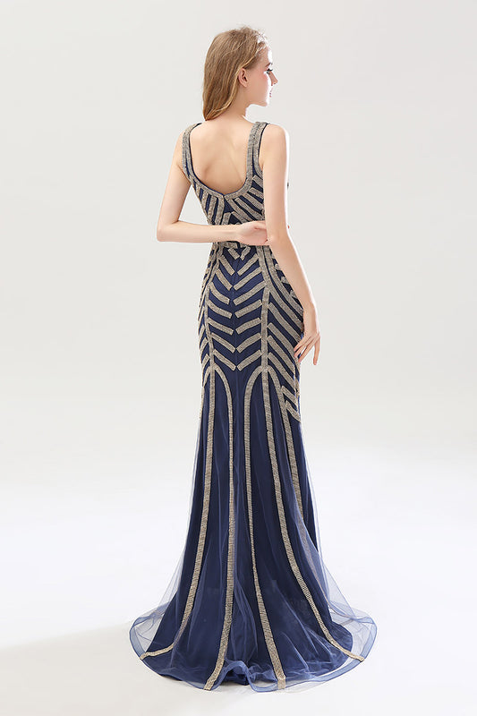 Navy V-neck Luxury Beaded Long Evening Dress Formal Mermaid Prom DressRegular price $239.00 USDRegular priceUnit price / per-