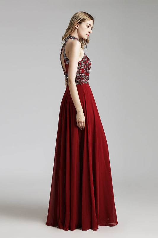 Red V-neck Beaded Long Formal A-line Prom DressRegular price $199.00 USDRegular priceUnit price / per-
