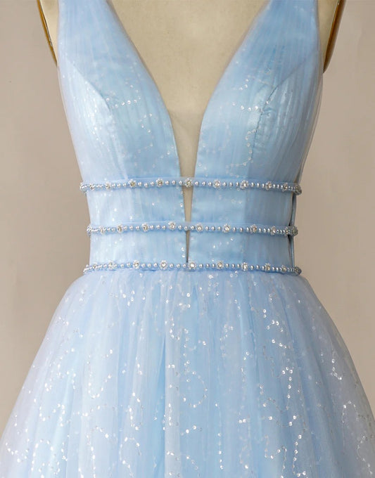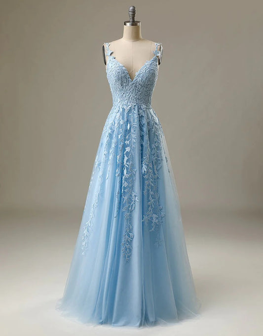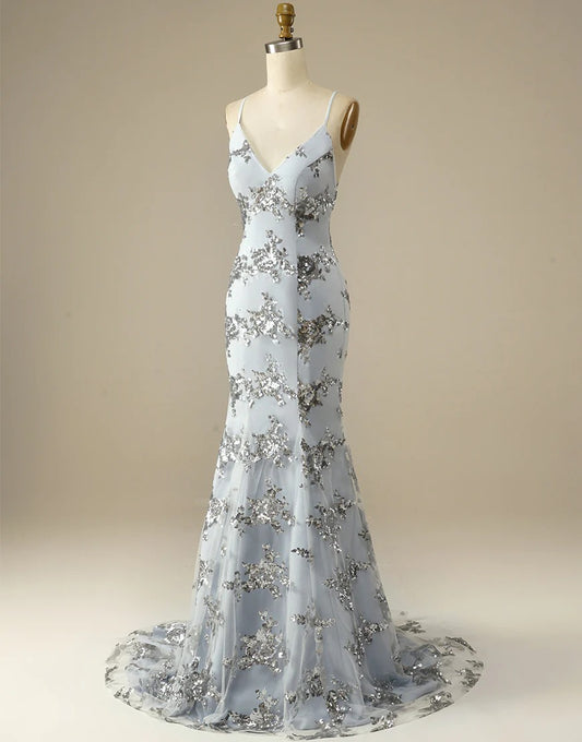Previous product Next product Light Blue Prom Dresses Spaghetti Straps Long Evening Dresses