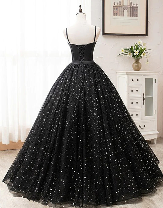 Black Long Sweetheart Tulle Prom Dresses,Evening Dresses