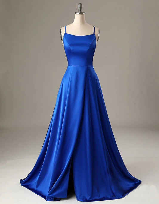 A-Line Royal Blue Prom Dresses Side Split Evening Dresses
