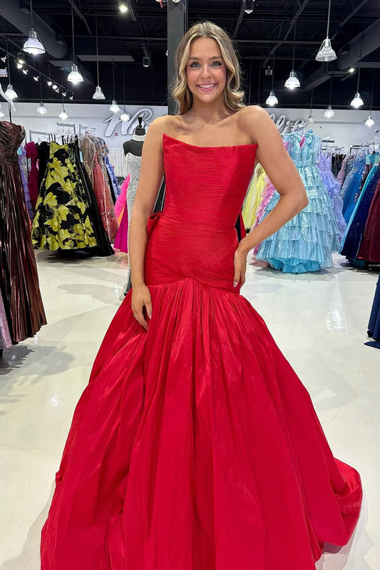 Cute Mermaid Satin Scoop Neck Red Prom Dresses