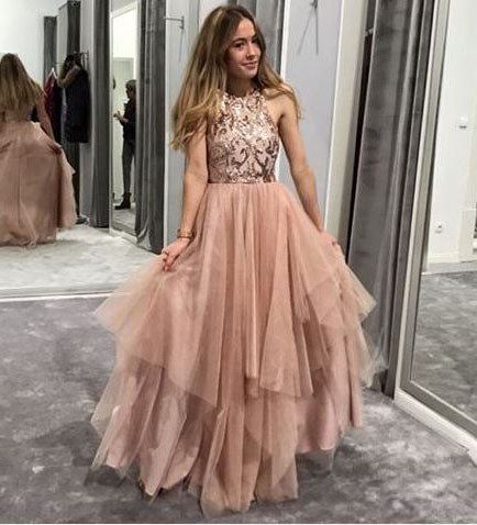 A-Line Asymmetrical Blush Prom Dress with Sequin