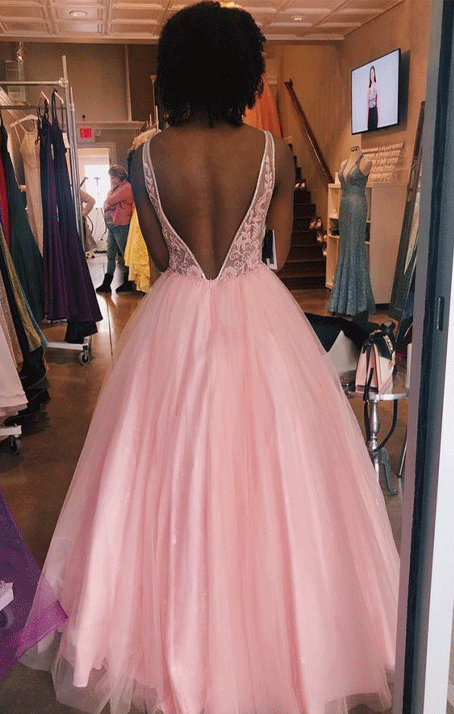 Tulle Prom Gown,A-Line Prom Dress,V-Neck Prom Gown