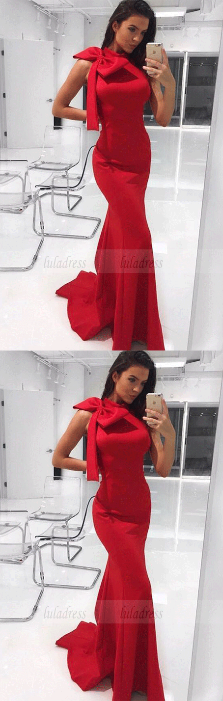 Mermaid High Neck Sleeveless Red Long Prom Dress