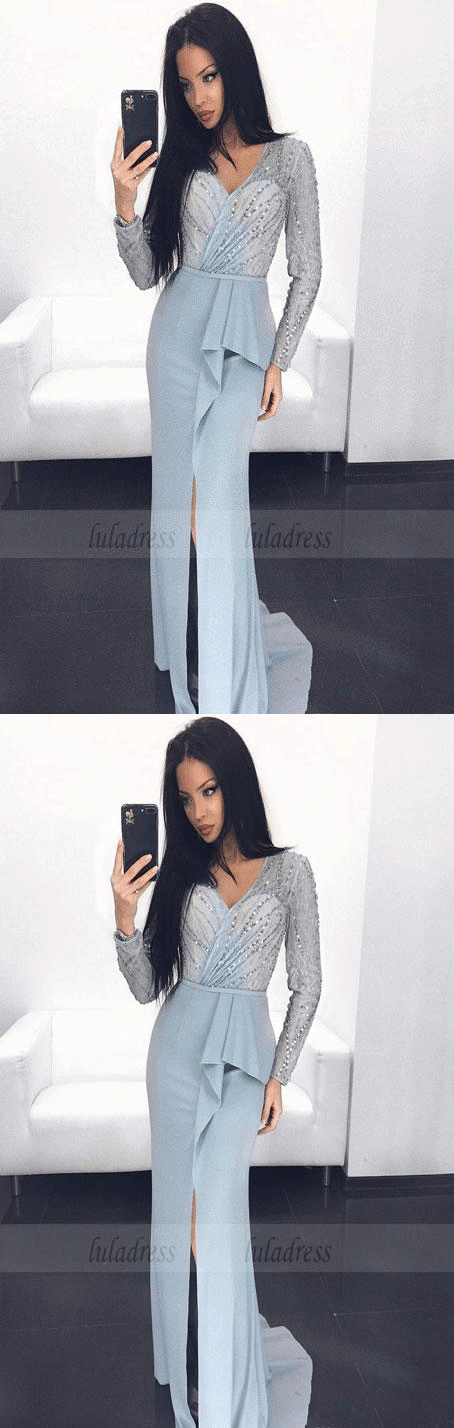 Long Sleeve Beading Prom Dress,Long Prom Dresses,Prom Dresses,Evening Dress