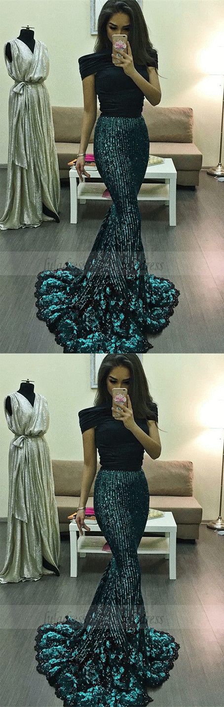 Mermaid Scoop Lace Bowknot Prom Dress, Sequin Long Formal Dress