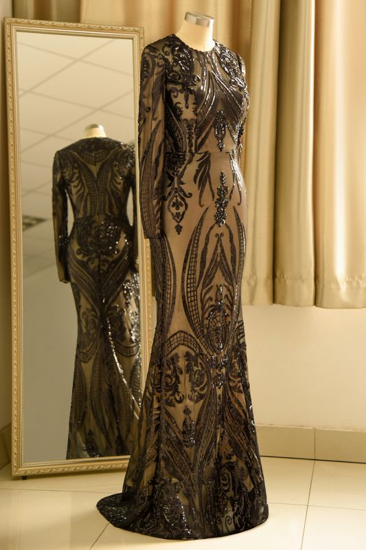 This elegant jewel sequined mermaid prom dress is perfect for your special occasion. With long sleeves and intricate appliques, it will highlight your figure and make you stand out. The sequins add a touch of glamour, while the mermaid silhouette offers a flattering fit. Be the belle of the party in this stunning dress.