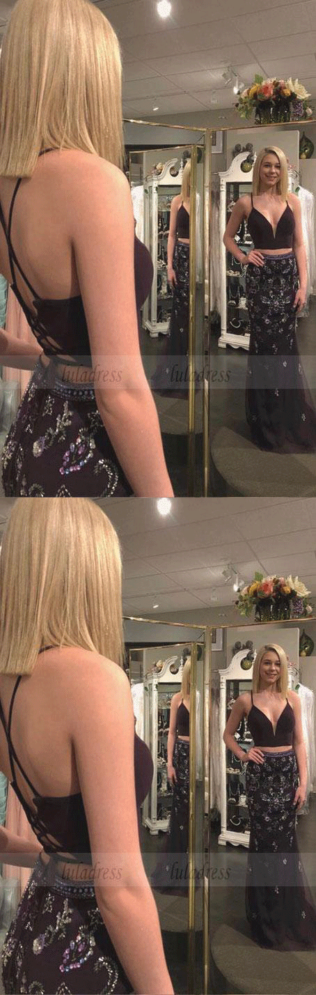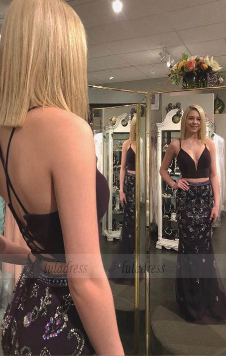 mermaid party dresses with beading,elegant 2 piece tulle evening gowns