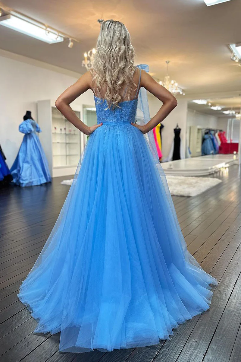 Red Spaghetti Straps Ruffle Tiered Tulle Long Prom Dresses