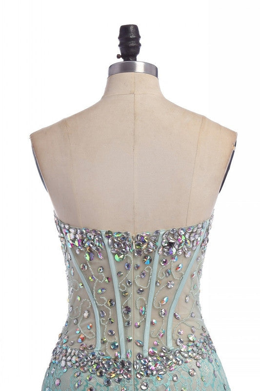 Experience elegance and charm in our light blue prom dress. With its stunning side slit and strapless design, this long prom dress is perfect for any special occasion. Turn heads and feel confident in this charming evening dress.
